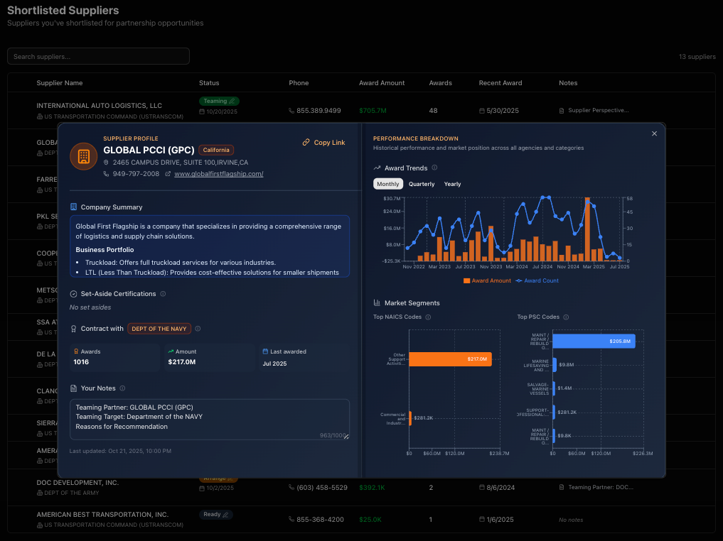 Instead of simply pulling data, our AI rebuilds the connections between solicitations, awards, and real company capabilities. That’s how Proact transforms fragmented government data into clear, actionable teaming intelligence.